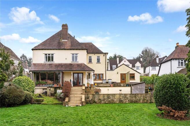The rear garden is the true highlight, a broad, sunny expanse with established boundaries providing privacy without sacrificing light. With terraces, a substantial lawn, a large garden store and a secluded former swimming pool site screened behind trellising, it is a garden made for family life, relaxation and outdoor entertaining. Its slightly elevated aspect also offers delightful views of the leafy backdrop.