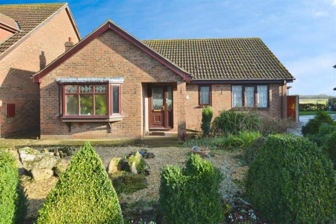 External - To the front of the property is a gravelled garden with shrubs, and a driveway to the side of the property leading to the detached, brick built garage and rear garden. The rear garden is low maintenance with views of open fields.