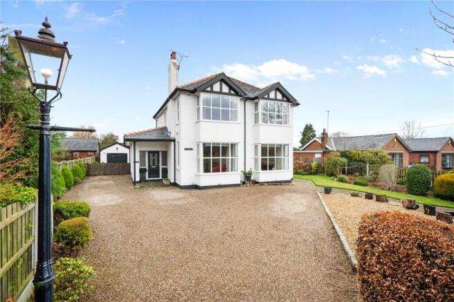 Internally, the accommodation is notably generous and arranged around a welcoming central hallway, creating a natural flow between the principal living spaces. The formal living room enjoys twin walk-in bay windows and a striking log burner, while additional reception spaces include a garden room flooded with natural light, a formal dining room ideal for entertaining, and a further lounge providing excellent versatility for modern family life.