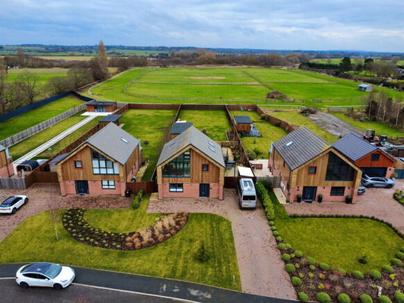 Just stunning! This unrivalled luxury property is beautifully presented and offers reverse level accommodation to suit any family buyer wanting an impressive home in a rural location. Approaching this impressive home, you are greeted by a sweeping brick-paved driveway providing ample parking and leading to the inviting entrance. Step inside to a spacious entrance hallway featuring a striking oak staircase with a glass balustrade, leading to the first floor. The ground floor level hosts three great sized bedrooms and the family bathroom. The main bedroom suite boasts bi-fold doors opening directly to the rear gardens, creating a seamless connection to the outdoors, and benefits from a private ensuite with a walk-in shower. Ascend to the first floor, where the heart of this home awaits: an expansive Open Plan Living/Dining/Kitchen area. This magnificent dual-aspect room captures stunning views across the gardens and neighbouring fields through a floor-to-ceiling picture window and bi-fold doors that lead to a superb under cover balcony. This all-weather space spans the entire width of the property, perfect for enjoying sunlit afternoons and alfresco dining. The contemporary kitchen area is equipped with Quartz worksurfaces, integrated ovens, and an induction hob, while the dining area offers ample space for entertaining. A convenient Utility Room/WC is also located on this level. The exterior of the property is equally impressive. The beautifully landscaped rear gardens are a true haven, backing onto open fields and offering a large patio, charming gravelled sections, and mature, well-stocked borders. A Corten steel fence and gated access lead to an extensive decked area, home to a versatile detached Summer House. This spacious, self-contained unit, complete with French doors and an adjoining office space with its own WC and boiler, offers an ideal solution for a home office, creative studio, or additional flexible living space as a fourth bedroom and separate bathroom (plumbing in place). Located in a private lane within Arkle Chase, this residence offers tranquility while maintaining excellent access to local amenities and transport links. This exceptional property presents a unique opportunity for luxurious and versatile living.
