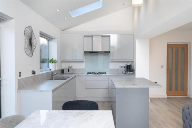 The ground floor is designed for both entertaining and cosy family life, centred around a spectacular, triple-aspect Dining Kitchen and Living Room. This grand heart of the home features a modern island and high-specification integrated appliances, with a seamless flow directly into the garden.