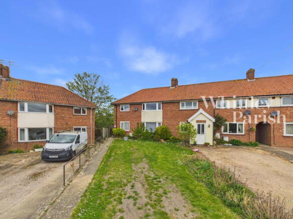The property enjoys a pleasing position set back from the road and tucked in a corner overlooking a small green. In front of the home there is a good size garden that offers excellent potential for off road parking, additionally parking is available on the green opposite in the shared spaces which are first come first served. The rear garden is enclosed by panel fences and is predominantly lawn with a shingle area abutting the kitchen diner.