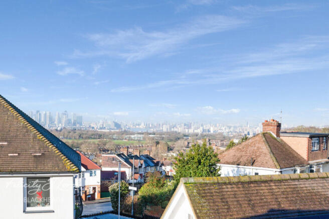 Upstairs, the first floor provides three well-proportioned bedrooms, with the principal bedroom benefiting from partial views across the surrounding area towards the iconic London skyline, adding a real sense of openness. A family bathroom completes the accommodation.