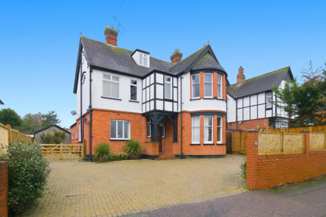 Externally, the property enjoys a south-facing rear garden, predominantly laid to lawn with a paved patio area. The garden also features a detached brick-built home office with bi-folding doors, along with a detached studio/annexe complete with kitchenette and WC. To the front, there is gated access both sides leading to a generous driveway providing parking for several vehicles.