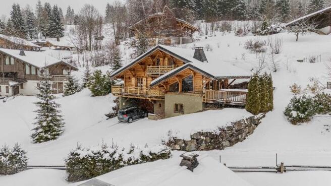 Externally, the property benefits from a private garage and additional parking spaces in front of the chalet.