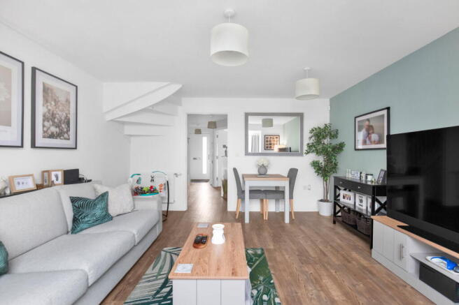 The ground floor is home to a contemporary fitted kitchen with integrated appliances — perfect for breakfasts or casual dinners. The large living/dining room stretches generously, with floor-to-ceiling French doors opening onto a wider-than-average rear garden, ideal for entertaining, play, or simply unwinding.