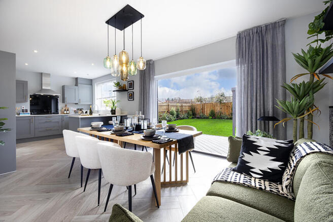 - Open plan kitchen and dining room with access to the garden