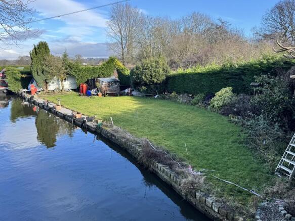 The land fronts the canal and benefits from approximately 34.5 metres of water frontage, providing picturesque waterside views and the prospect of creating a private garden space alongside a moored canal boat. Access is provided via an existing driveway, and the plot presents potential for future development or alternative uses, subject to obtaining the necessary permissions.