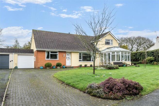 The front door opens to the entrance/inner hall with built in store cupboards and access to the sitting room with a large window to the front and a walkthrough to the cosy living room with a stone open fireplace, double doors to the conservatory and a walk through to the dining room with a staircase to the first floor and walk through to the kitchen. Fitted with wall and base units, the kitchen also has fitted electrical appliances and a door to the rear garden. The hallway also gives access to three ground floor bedrooms and shower room. The first floor landing gives access to eaves storage and to the master bedroom with built in wardrobes to one wall and to the en-suite bathroom. Outside a brick paved driveway/turning area gives access to the garage, the front door and the conservatory. The front gardens are laid to lawn with shrub borders while the rear garden has a patio adjacent to the rear of the property, lawn, shrub borders and a summerhouse.