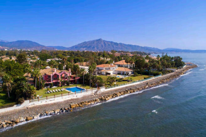 Luxury Beachfront Villa in Casasola - New Golden Mile, Estepona Introducing a classic beachfront villa in Casasola, one of the most prestigious residential areas on Estepona's New Golden Mile. This property stands out for its prime seafront position, generous plot size and timeless elegance, offering a unique opportunity in today's luxury market. Set on an impressive 2,610 m² plot with direct beach access, the villa boasts 880 m² built plus 120 m² of terraces, designed to capture the breathtaking panoramic sea views. With 5 en-suite bedrooms and 6 bathrooms, including separate guest and staff accommodation, this home is ideal both as a permanent residence and as an exclusive holiday retreat. Key features include: Private heated swimming pool surrounded by mature gardens. Full climate control with air conditioning, central heating, fireplace and underfloor heating. Independent guest house and apartment ensuring maximum privacy. Garage for several vehicles. 24-hour security, alarm system and video entry. The villa is in need of renovation, offering the perfect canvas for the new owner to modernise and add value in one of the Costa del Sol's most sought-after beachfront locations. Whether as a luxury family home, a second residence, or a high-yield investment property, this villa represents a rare opportunity on the Mediterranean coastline. Prime location: Directly on the beachfront. Only minutes from Puerto Banús, Marbella and Estepona town. Surrounded by world-class golf courses, fine dining and exclusive amenities. A truly unique property that combines exclusivity, generous spaces and an unbeatable beachfront setting.