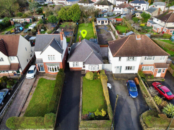 The property sits back from the road behind a generous driveway and a front lawn garden. There is gated access alongside the bungalow to the rear. At the rear there is a large seating patio area, extensive lawn gardens and three brick outbuilding stores.