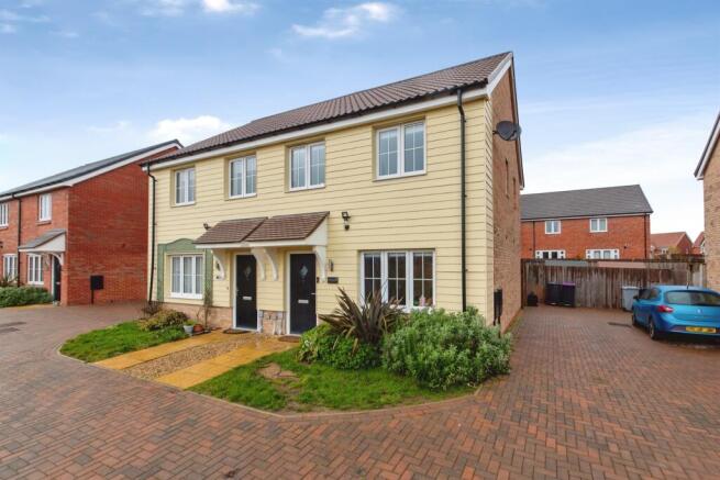 Externally, the front garden is complemented by a block-paved driveway running alongside the house, providing off-road parking for two to three vehicles. The fully enclosed rear garden features a paved patio and lawn.