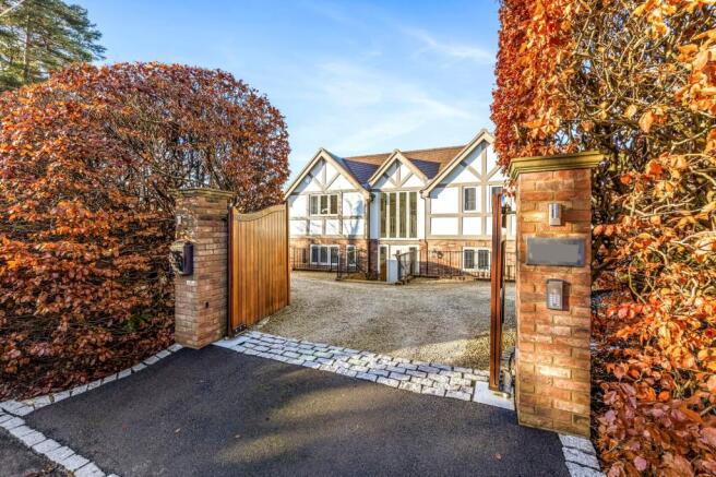 The property is approached via twin electronically controlled timber gates on brick pillars which give access to the LARGE GRAVEL DRIVEWAY: which provides parking for a number of vehicles and enclosed by thick beech hedging and close board fencing. Shallow steps descend to the front of the property and the front door.