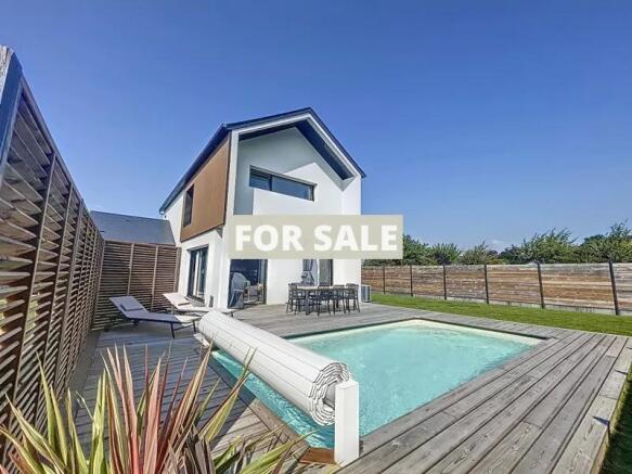 The property sits on a 545 m2 plot and features a 70 m2 terrace. It is equipped with a heated swimming pool and fibre optic internet.