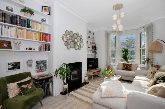 Welcome to this lovely two-bedroom mid-terraced home, where character features blend effortlessly with modern living. As you enter the bright hallway with natural wood flooring and stylish lighting leads you through to the main living space. The open-plan living and dining areas feel airy and welcoming, filled with natural light from the large bay windows. High ceilings, decorative moulding and a cosy wood-burning stove make this a great spot to relax or entertain.