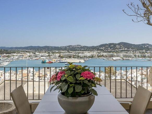 Overlooks Ibiza Town, the marina, and the Mediterranean Sea
