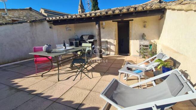 Finally, there is access to a magnificent 30 m2 terrace with summer kitchen, and enjoying fabulous views of the plain extending below the village and Mont Ventoux in the distance.