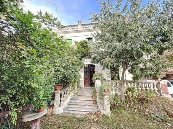 The ground floor includes an elegant entrance hall leading to a double living room, an office, a kitchen overlooking a side courtyard, 5 bedrooms, a bathroom, plus WC, all to be updated.