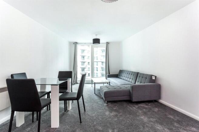 The apartment extends to approximately 528sq.ft (49.1sq.m) and is arranged to maximise usable living space. The accommodation comprises an open-plan reception room with integrated kitchen, a generous double bedroom with fitted storage, and a modern bathroom. The apartment overlooks the development’s internal courtyards, providing a quieter aspect away from the road.