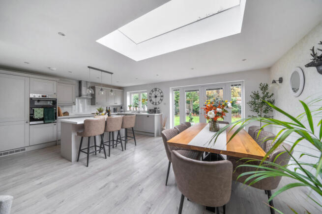 Step inside to find a large open-plan reception and dining room, perfect for entertaining and family gatherings, filled with ample natural light. To the rear of the property is a well-appointed and contemporary kitchen designed for convenience, along with a practical utility room. The property also comes complete with a handy WC and spacious bathroom, which completes this well-thought-out layout.