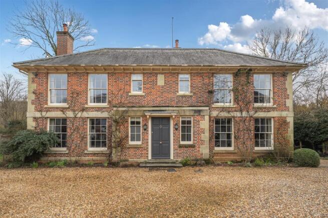 To the front of the house, there are two large borders planted with well-established roses and box balls. The rear garden boasts a large central patio that extends from the garden doors off the formal lounge and snug, flanked by two lawned areas on either side. At the far end of the garden, iron estate fencing and a central gate lead out to the water meadows. Additionally, the rear garden features two well-planted beds that wrap around the property, showcasing well-established box balls and roses. Access to the rear garden is available via gravel pathways on either side of the home.
