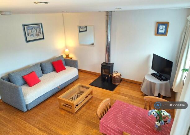 Spacious and light one bed property in Dartington with kitchen, living room, one very large bedroom, south facing courtyard garden, private off road parking, wood burner, curtains, washing machine, cooker, part furnished.