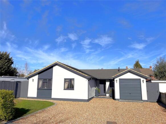 Set back behind a broad gravel driveway providing ample parking, the property immediately impresses with its smart, contemporary façade and generous frontage - a rare feature within such a peaceful setting.