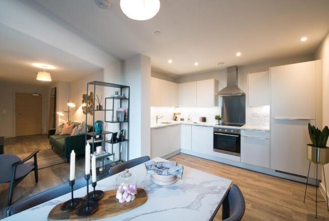 Open-plan living area, luxury wooden flooring throughout, and fitted blinds. Fully fitted kitchen, integrated appliances, fridge/freezer, dishwasher, washer/dryer, oven, hob and extractor fan