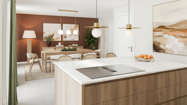 Step inside to a welcoming entrance hall leading to a thoughtfully arranged ground floor. The kitchen and dining area sit at the heart of the home, designed for both entertaining and everyday life. Contemporary cabinetry, stone worktops and integrated appliances create a streamlined aesthetic, while generous glazing enhances natural light and garden views.