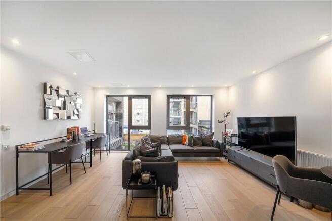 The apartment, which boasts a generous 831sqft of contemporary living space, has a 17' 11" x 16' 7" reception room with 8' high ceilings, which is open plan to a modern kitchen, perfect for entertaining guests. The two bedrooms are doubles, with the principal bedroom enjoying built-in wardrobes, access to a private balcony and en-suite shower room. Off the wider than average hallway, is a stylish family bathroom and a large storage cupboard. With modern fixtures and fittings throughout, the apartment exudes a stylish charm that is sure to impress.