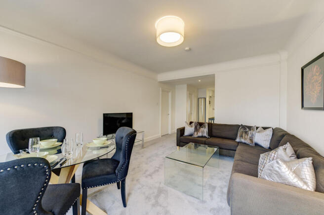 A contemporary two double-bedroom apartment located on the first floor of a period mansion block in the heart of Chelsea, London SW3. The property comprises two double bedrooms, a generously sized reception and dining room with views over the communal gardens to the rear, a separate kitchen, one bathroom, a guest WC, and ample storage space. The apartment is available to rent furnished or unfurnished.