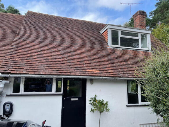 Lounge/Diner – 7 m x 5.8 m, good sized bright room with wood burner and radiators. Parquet wood flooring, bookshelf, double glazed UPVC patio doors, single glazed windows to the front, rear and side of the property