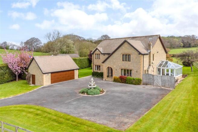 Rowberrow Lodge is a substantial stone-built home dating back to 1992, occupying a generous and beautifully tended plot of 0.484 acres and bordered by farmland, offering a superbly private setting. The property features a large terrace incorporating a feature Koi pool and a bespoke garden gazebo, which provides the perfect space for outdoor dining and entertaining. A secure gated entrance leads to a long driveway, with a sweeping turning and parking area at the front of the house, offering ample parking for multiple vehicles. In addition, there is a detached double garage with a useful mezzanine room above, which could serve as a home office, studio, or additional storage space. The house is fitted with stone mullion double-glazed windows, ensuring both style and energy efficiency.