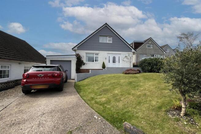 To the front: driveway and garage providing ample off road parking. steps leading to main entrance, large lawn area.