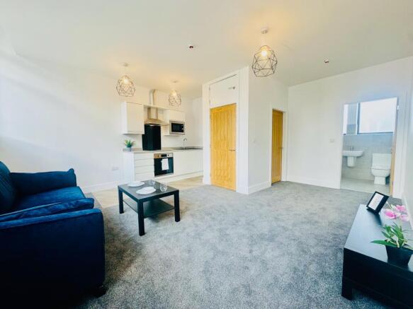 Upon entering the apartment you are welcomed in to the kitchen lounge area with brand new windows flooding this open plan space with light and with views across Nottinghams skyline.