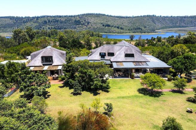 The main house is perched atop the mountain, and with a wrap around stoep, it is perfect for balmy days working outside on the stoep, or sitting and just appreciating the beauty that surrounds. Leading through the specially designed "Old" front door, your eyes are swept upstairs by the staircase to the bedroom area. The main living area is open plan, with ample windows for viewing every angle of the greenery and beauty that is the farm. A large chandelier welcomes you in, and leads you to the formal dining area, and through to the viewing lounge with a fireplace - with views of Swartvlei.