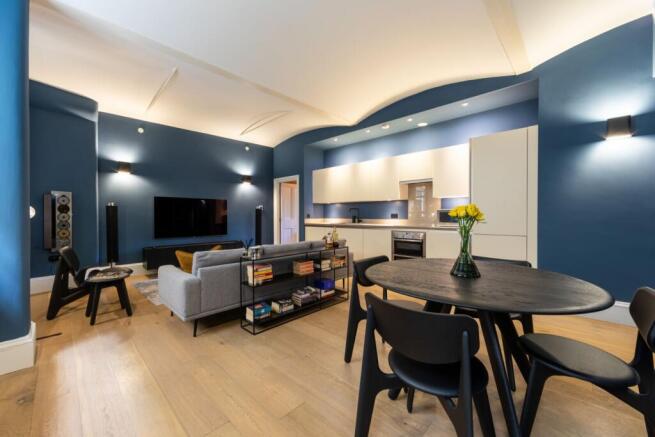 Upon entering the property, you are greeted by original vaulted 12ft high curved ceilings in the main living area and beautifully restored large period sash windows.