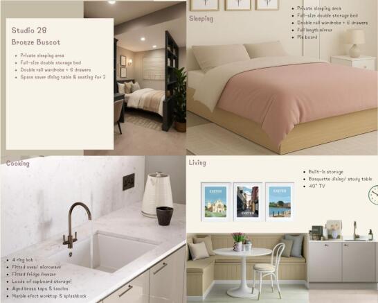 Ideally located just moments from Exeter University, caf s, independent shops and cultural landmarks, the Bronze Buscot Studio offers a characterful and affordable boutique option - cosy in size, yet thoughtfully designed to meet the demands of modern student life.