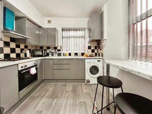 The kitchen is fully fitted and comes with integrated white goods, it's a good size and leads directly onto the back yard.