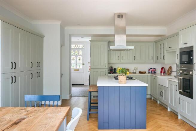 This exceptional home has been renovated to a meticulous standard and features a stunning 26 ft open-plan kitchen and living space with a central island and full-width bi-folding doors opening onto a landscaped private rear garden. The bespoke family living area benefits from abundant natural light and flexible space, complemented by a cosy reception room with bespoke carpentry and a ground-floor cloakroom.