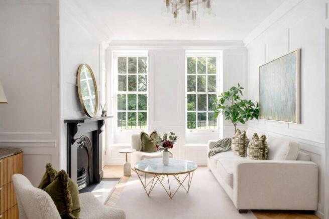- Elegant Georgian features including high ceilings, tall sash windows, and original fireplaces
