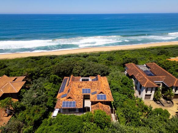 Practicality and style are seamlessly combined with a well-appointed scullery and separate laundry adjacent to the kitchen, presented to the same exacting standard as the main living areas. Artistic glass features positioned at the main stairwell and first-floor landing offer a striking and unconventional privacy solution for large glazed spaces. The first floor houses four generous bedrooms—three with ocean views and a fourth enjoying a sunny, north-facing outlook over the forest. Professionally integrated smart-home systems include solar-powered security cameras for remote monitoring, plus air-conditioning, alarm and irrigation controls that can be managed from anywhere in the world. This is an exceptional, easy-living home located on one of the finest sites in Zimbali, and receives our highest recommendation.(Note on Areas: A detailed area schedule can be provided, indicating the ground floor areas totalling 322.87 sqm and the first floor areas providing 259.22 sqm, amounting to a combined total of 582.09 sqm.