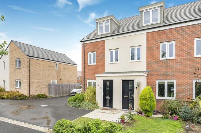 Occupying a pleasant position on the development, the property enjoys views over a communal green to the front with a hard standing driveway to the side providing parking for multiple vehicles. Gated access leads to the rear garden which is laid mainly to lawn with a patio seating area and a timber shed providing storage.