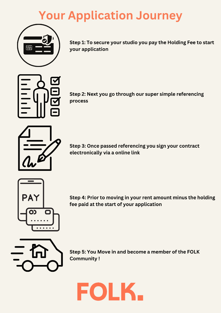 Folk offers an all-inclusive package that covers studio rental and associated costs for utilities, WiFi, and council tax within a fixed monthly fee. The advertised rental price applies to the studio only and excludes the £210 fixed fee for these associated costs. To calculate the total monthly fee payable, the £210 should be added to the advertised rental price