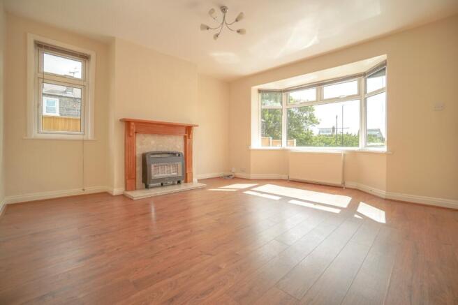 The lounge is a bright and generous space, enhanced by a bay window that allows plenty of natural light. Oak-effect laminate flooring adds warmth, while a feature gas fire creates a cosy focal point.
