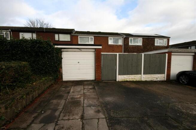 Outside - Th e front of the property the uPVC clad store cupboards houses the meters. An enclosed garden to the rear has a paved patio and decking. The gate to the rear gives pedestrian access to the garage at the rear and additional communal parking.
