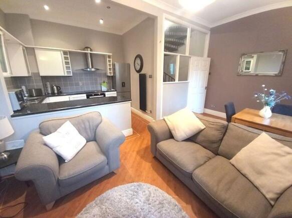 * Open plan living space as lounge/diner with 4k TV and fitted kitchen with breakfast bar