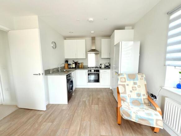 There is a dual-aspect reception room with south/south-east-facing Juliet balcony and an open-plan kitchen area featuring sleek, white units. The bedroom has a fitted wardrobe and the bathroom is simple yet stylish. A large storage/utility cupboard has been provided in the entrance hallway and the well insulated walls and roof, high performance glazing and modern gas central heating system all contribute towards a very good energy-efficiency rating. Leatherhead Railway Station, for services between Guildford/Dorking/Horsham and London Waterloo/Victoria, is only a short walk away and the town centre is also within easy reach. The flat comes with use of an allocated parking space.