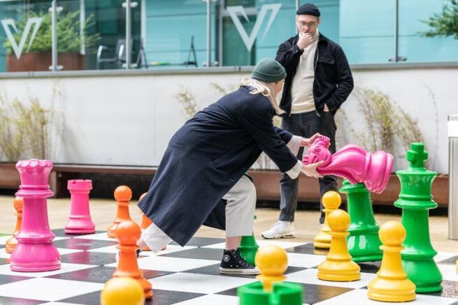 Complete with giant chess board, table tennis and seating to enjoy with your visitors.