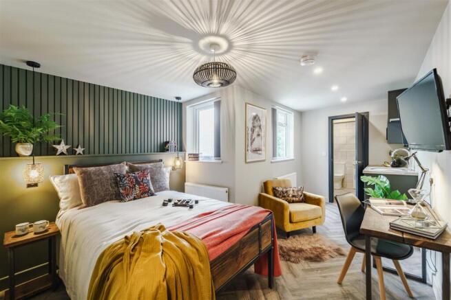 In brief the property comprises of an entrance hallway with censored lighting, this studio is located on the first floor of the property. This fully furnished room features a bed, wardrobe, drawer unit, dining table, a private kitchenette with a sink and fridge and its own tiled bathroom fitted with a shower cubical and white suite.